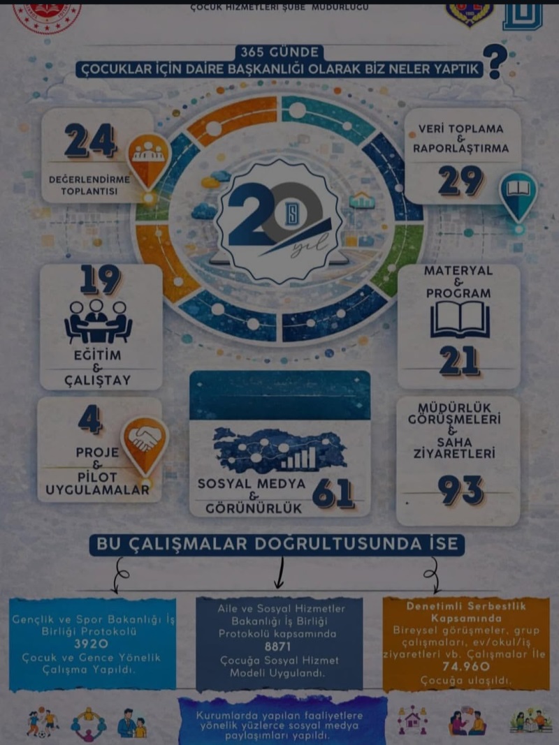 Bu kurumsal planlama ve yönlendirme; sahada somut bir karşılık buldu: Çocuklara yönelik 74.960 iyileştirme ve destek faaliyeti (bireysel görüşme, grup çalışması, aile ev ve okul ziyareti) gerçekleştirildi.