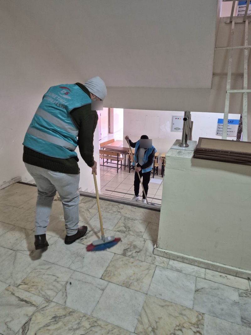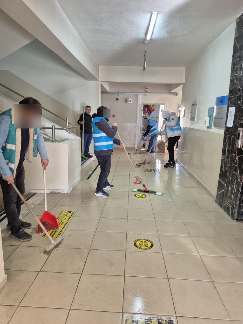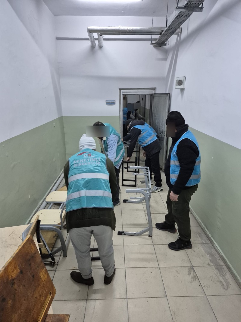 Denetimli Serbestlik Müdürlüğü ve İlçe Milli Eğitim Müdürlüğü ile yapılan iş birliğiyle ara tatil döneminde önceden belirlenmiş olunan 2 okulda temizlik ve bakım çalışmaları gerçekleştirilmiştir.